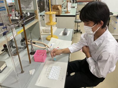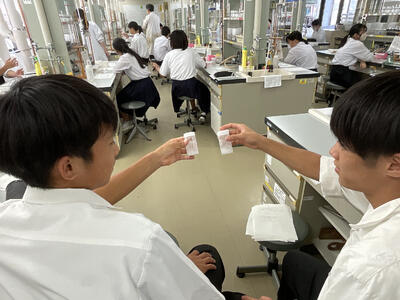 鳴門教育大学大学院の研究員による英語で理科授業を本年度も行いました。昨年度より、普通科2年次理系の生徒にも実施しています。2限目は普通科、4限5限は理数科生徒を対象にオールイングリッシュでの理科実験授業を実施しました。SAGAR Meenal Yashna:フィジー(主授業者)、SHI Weina:中国、LI Ying:中国(補助授業者)各先生による「混合物と分離」を2・5限目に、JAMO Deila:モザンビーク(主授業者)、BANZE Alaudino:モザンビーク(補助授業者)各先生による「食物の分類(含有タンパク質検出)」を2・4限目に実施しました。実験やグループワーク及びディスカッションを行い、事前に配付された単語リストを活用し、コミュニケーション力をフルに発揮して授業に挑みました。