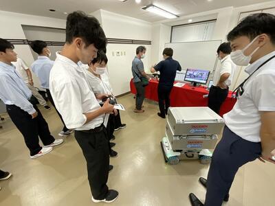 昨年度より参加している阿南光高校と徳島大学生物資源産業学部との高大連携事業で、徳島大学生物資源産業学部(常三島キャンパス)研修が実施され、今年度は富西生3名も参加しました。まず、大学生の活動場所であるイノベーションプラザを見学し、鳥人間コンテストや阿波電鉄プロジェクト、ロケット研究、ロボットコンテスト等の活動について担当の学生さんから説明を受けました。