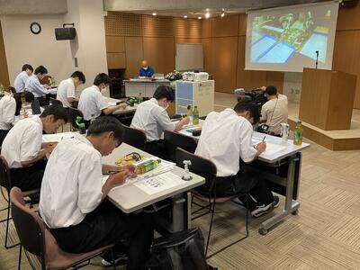 初めに、日亜化学工業の会社紹介があり、自社で製造・開発中の希土類を原料とした磁性体についてわかりやすく説明をしていただきました。特に強力な磁石の開発には、磁性材料の生成技術が欠かせないことなど、専門的な知識について多くのことを学びました。最後に研究者として、将来の進路選択等に生かせる貴重なアドバイスをいただきました。