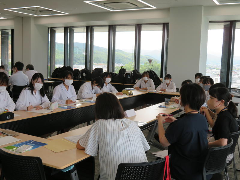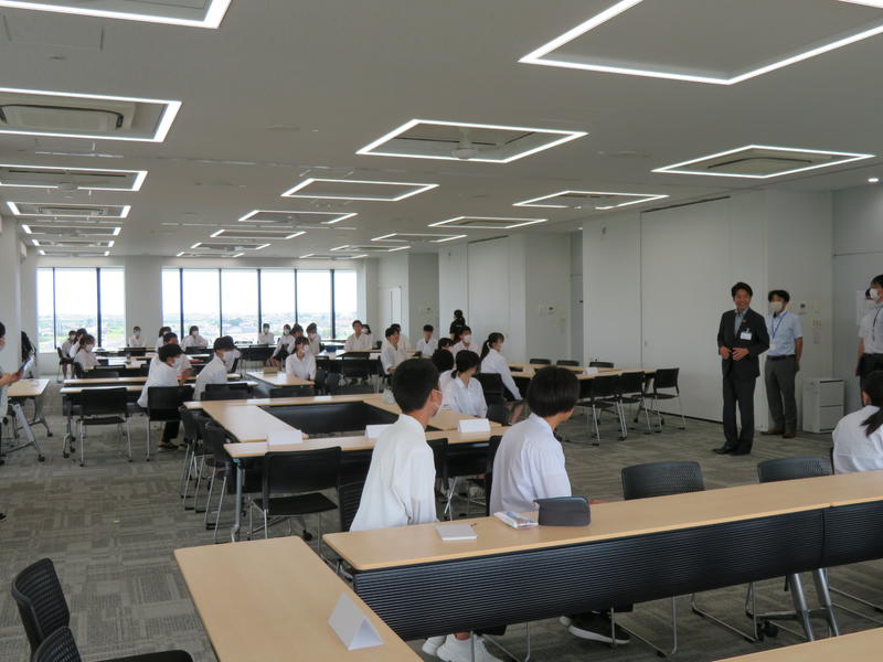 7月24日(月)39名の生徒が阿南市役所を訪問しました。市長様よりお話をしていただき、庁舎内を見学した後、グループに分かれて各課の担当の方に質問したり、お話を聞いたりしました。課題研究を進めたり、進路について考える上で、有益な体験をすることができました。
