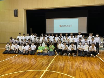 今年度のSMARTは、愛媛県四国中央市の伊予三島運動公園体育館で開催されました。本校からは、1年次生から1チーム(TNーscience)と2年次から1チーム(TNーTaiwan)の合計2チームが参加しました。