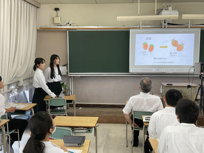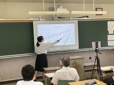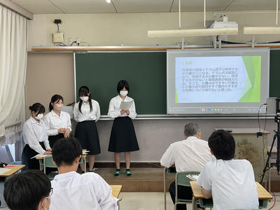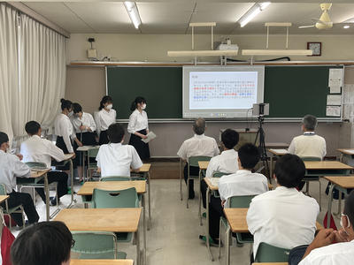 理数科3年次生がこれまで行ってきた課題研究について、スライドを用いた課題研究発表会を行いました。SSH運営指導委員や教育委員会の方々、理数科1・2年次生は、4教室に分散し、発表するグループが各教室を移動する方式で実施しました。開会式・閉会式はZoomを使用し4教室同時開催で行いました。各教室での司会進行を、理数科2年次生が担当しました。各発表後は、活発な質疑応答が行われました。今後は、アドバイスシートや、評価シートを参考に修正や追加実験等を行い、研究論文を仕上げていきます。