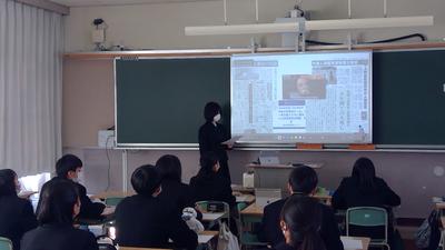 脇町高校主催で、徳島北高校、川島高校、富岡西高校の生徒がzoomを介して集まり、大変貴重なお話を聞かせてもらいました。本校からも「マーケティング、経済、経営、地域活性化、自治体支援」などの分野に興味を持つ、3年生21名、2年生12名、1年生4名の計37名が参加しました。マーケティングとは何か、マーケティングの重要性、商品購入を通じての自治体支援の仕組み(晴れ風ACTION)など、今後の学習や課題研究、将来の進路にも活かすことができる興味深いお話を聞かせていただきました。
