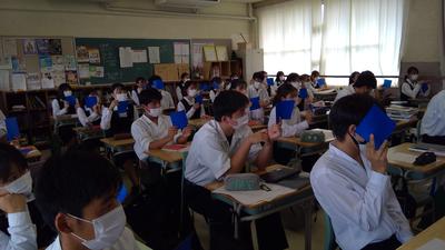 この日に向けて準備してきた研究内容を,パワーポイントのスライドとともに1人ずつ発表しました。発表が終わるたびに,聞き手の生徒たちが「青色(客観的)」と「赤色(主観的)」の色紙で評価をしました。発表した生徒の緊張した面持ちから「ホッ」と胸をなでおろす瞬間でした。