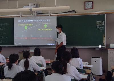 9月18日(日)に、とくぎんトモニプラザで徳島県主催「徳島未来創造・アップデートコンテスト2022」の最終審査会が行われました。応募総数491作品の中から上位10位に選出された作品のうち、本校からは3名が選ばれプレゼンテーションを行いました。一人ひとりに審査員の方々から講評をいただき、今後の課題研究を深めるヒントとなりました。また、他校生のプレゼンテーションも聞くことができて、良い刺激となりました。