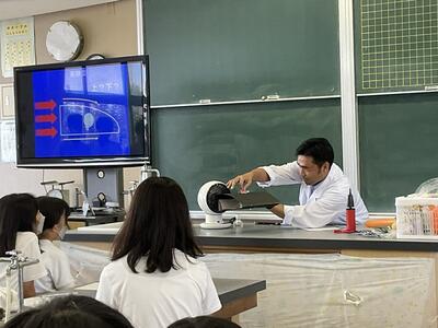 理数科1年次生が、深田先生による講義を聴講しました。まず、免疫についての仕組みをわかりやすく丁寧に説明していただきました。次に、新興感染症の基礎知識と、エイズの特効薬に関わられた日本人医師についてのお話を聞きました。エイズは不治の病ではないことを初めて知りました。薬学に関する知見を広げることができ、医療人としての倫理観や使命感について深く考えることができました。