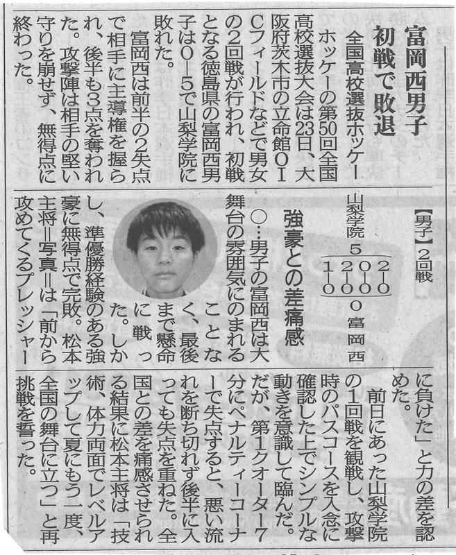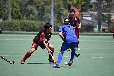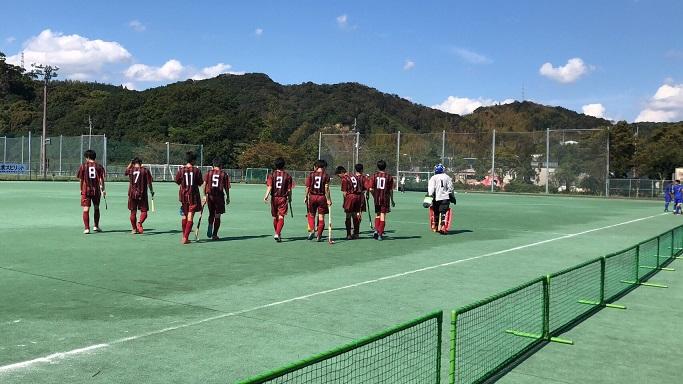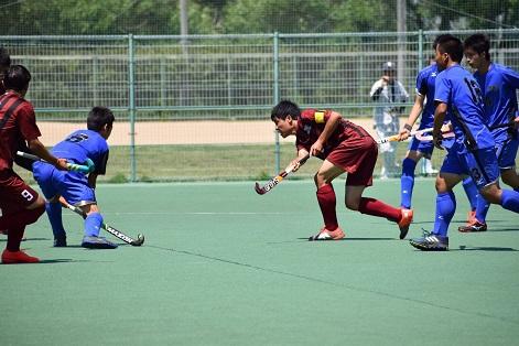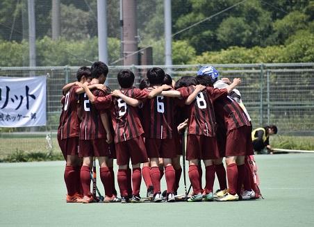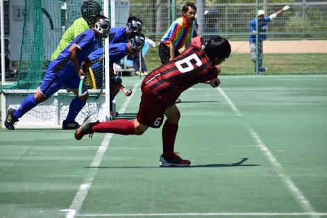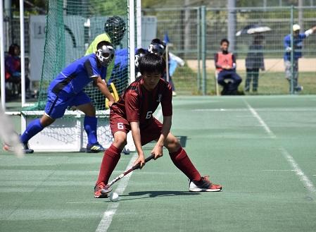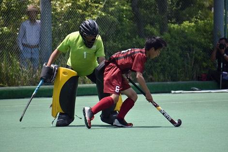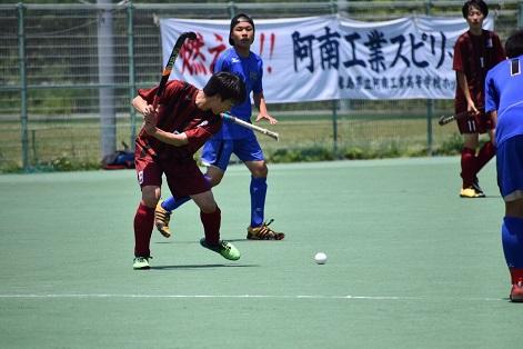 試合は序盤から攻勢に出るも得点には至らず、一進一退が続きました。第2 Q に PC (ペナルティーコーナー)から山田がゴール右隅に決め待望の先制点を挙げました。その後は反撃に出る阿南工・阿南光の猛攻を受けるも MF 谷を中心に堅い守りで得点の許さず、1-0のリードのまま第3 Q を終了。最終第4 QPC から失点し同点に追いつかれるも、残り3分右サイドの突破から最後は FW ポデズワがシュートを決め2-1と突き放しました。しかし、残り30秒一瞬の隙を突かれ相手チームに得点を許してしまいました。試合は2 - 2で終了し SO (シュートアウト)戦に持ち込まれました。1番手谷が冷静に決めるもその後はゴールを割ることはできず、逆に阿南工・阿南光に2本決められ1-2で敗れました。