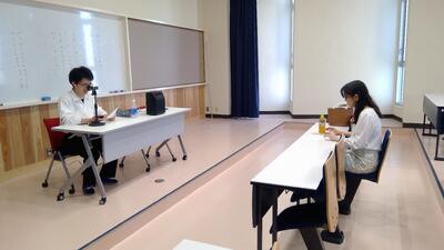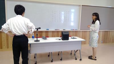 6月4日、第59回徳島県高校放送コンテスト、朗読部門参加にあたり、FMとくしまラジオパーソナリティーの蔭山洋子さんに指導をしていただきました。発声練習から朗読本文の指導まで、細かいところまで丁寧に指導してくださいました。6月9日の本番に向けて、非常に励みとなりました。