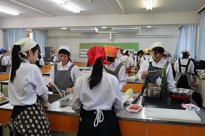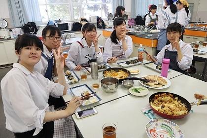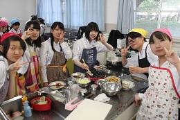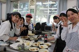 家庭科部は、月に2,3回程度、金曜日に活動しています。新入生も入り、現在部員は42名います。洋菓子や和菓子、時には料理を作ることもあります。作ること、食べることが大好きな子たちが集まっており、毎回楽しく活動しています。地域創生にも力を入れており、家庭クラブと共同で商品開発や販売などマルシェなどへの出店も行っています。