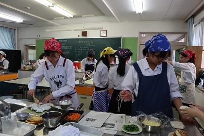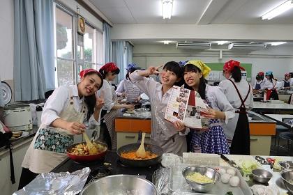 中学生体験入学の8月2日(木)、久しぶりに活動を行いました。中学生もたくさん見学に来てくれました。中学生体験入学の日は、毎年恒例ランチ&デザートです。3年生の要望で、韓国料理に挑戦しました。メニューは“チーズダッカルビ、キンパ、ホットク”、デザートのホットクはお持ち帰り用で、パフェを作りました。今回で3年生も最後になります。地域のイベント参加にも、積極的に参加してくれました。いつも賑やかで明るかった3年生がいなくなるのは、さみしくなりますが、それぞれの進路実現に向けて頑張ってくださいね。