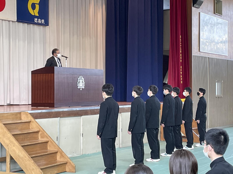 剣道部主将からの挨拶の後,学校長と生徒会長から激励の言葉をいただきました。