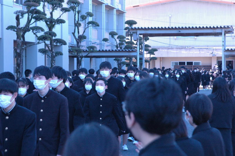 1,2年次生は,各教室でZoomで式の様子を参観しました。卒業式当日には,在校生は参加できないので,3年次生の退場の時に,在校生が花道を作り,拍手で3年次生を見送りました。