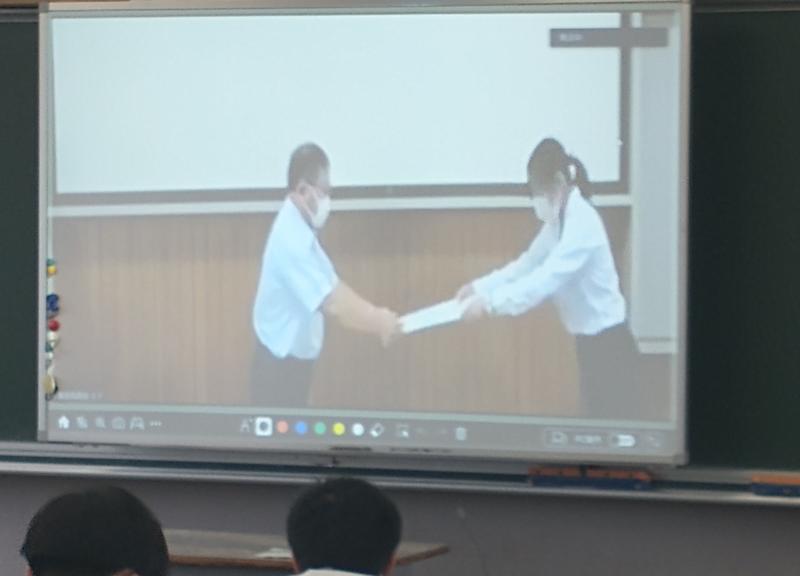 表彰伝達・始業式を電子黒板を使用して実施しました