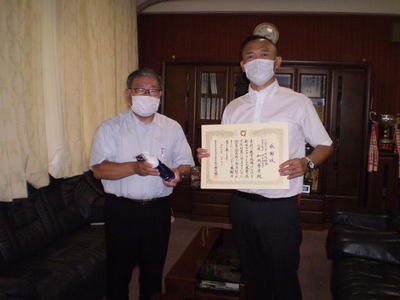 8月10日に、WorksHAUNT(ワークスハウント)代表 和渕誉貴様 が来校され、橋見校長から感謝状を贈呈しました。