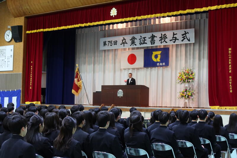 3月1日(金)、令和5年度第75回卒業証書授与式を挙行しました。東條 PTA会長様、庄野 牛岐同窓会会長様をはじめ、多くの来賓の方々、保護者の皆様にご参列いただき、卒業生188名の門出を祝っていただきました。生徒たちは仲間との絆や笑い合ったかけがえのない時間、今まで見守ってくださった方々への感謝など、高校3年生で得た大切な宝物を胸に、笑顔で思い出多き学び舎を巣立っていきました。