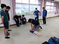 阿南消防署より講師をお招きして、教職員の心肺蘇生法・AED講習会を実施しました。いざという時に適切な応急手当が行えるよう、毎年講習会を行っています。今回は、エピペンの使用方法及び熱中症の対応についても御講義いただき、充実した研修となりました。
