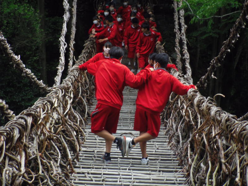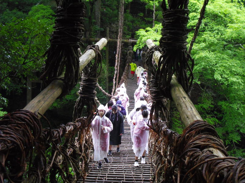 6月22日(木)に1年次生が祖谷方面(12HR、13HR)と淡路方面(11HR、14HR、15HR)に分かれて探究活動に出かけました。朝、阿南を出発するときは雨模様でしたが、みんなの願いが通じたのか訪問先ではおおかた好天に恵まれ、元気に活動できました。淡路ではキャラクターの前やアスレチック、ジップラインで楽しんだり、少し怖がったりする様子が見られました。祖谷でも比較的長く高い位置にあったジップラインに覚悟を決めて(?)挑んでいました。前半と後半で、晴天と雨天での体験となったかずら橋での様子もご覧ください。