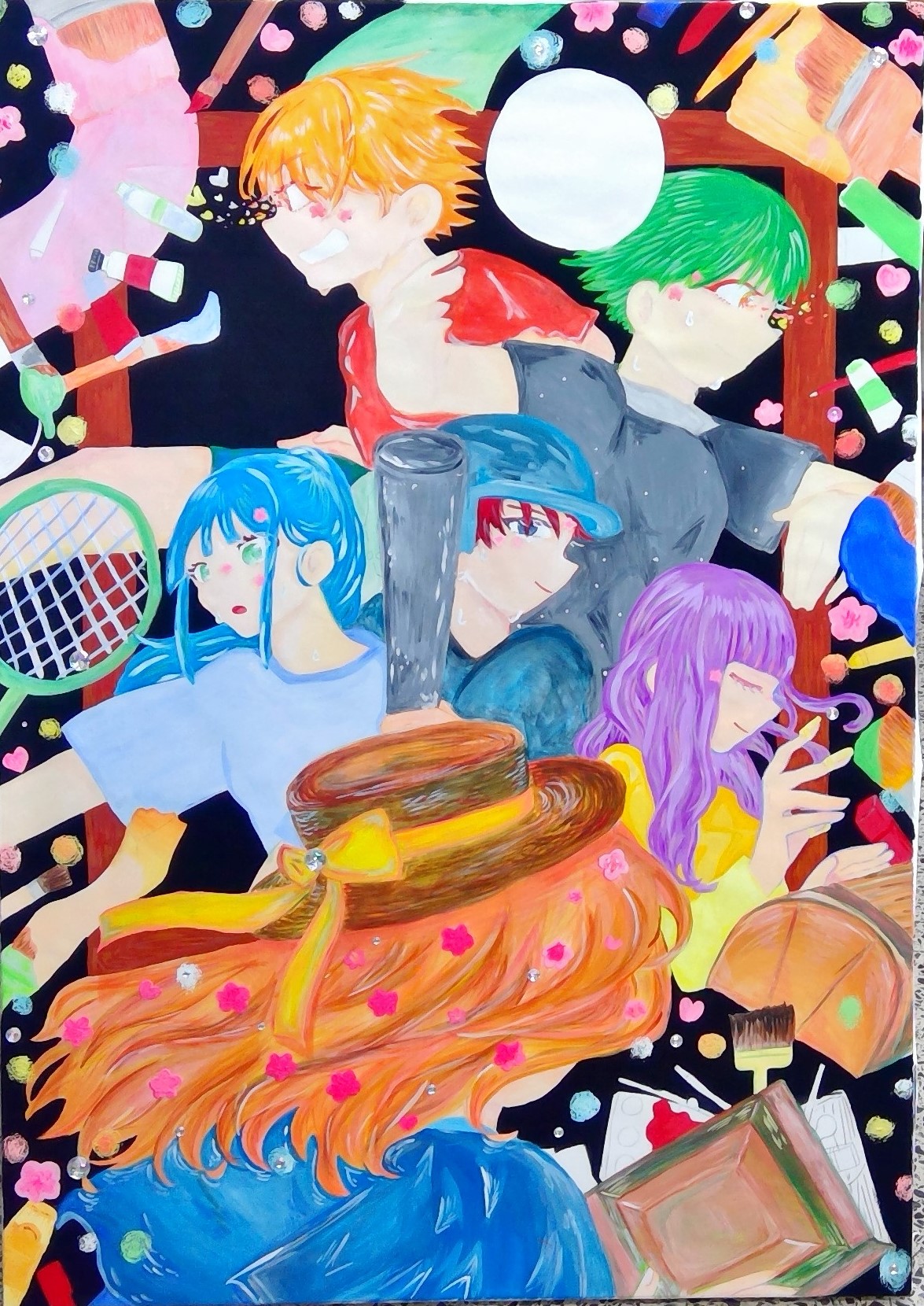 美術部では、部員それぞれが自分の興味・関心のあるジャンルに取り組み制作活動をしています。 その成果を各種コンクール等に出品、発表し、数々の実績を上げてきましたが、賞をとることが目標ではなく、各自の自己探求・自己表現を深める制作活動を部の目標としています。